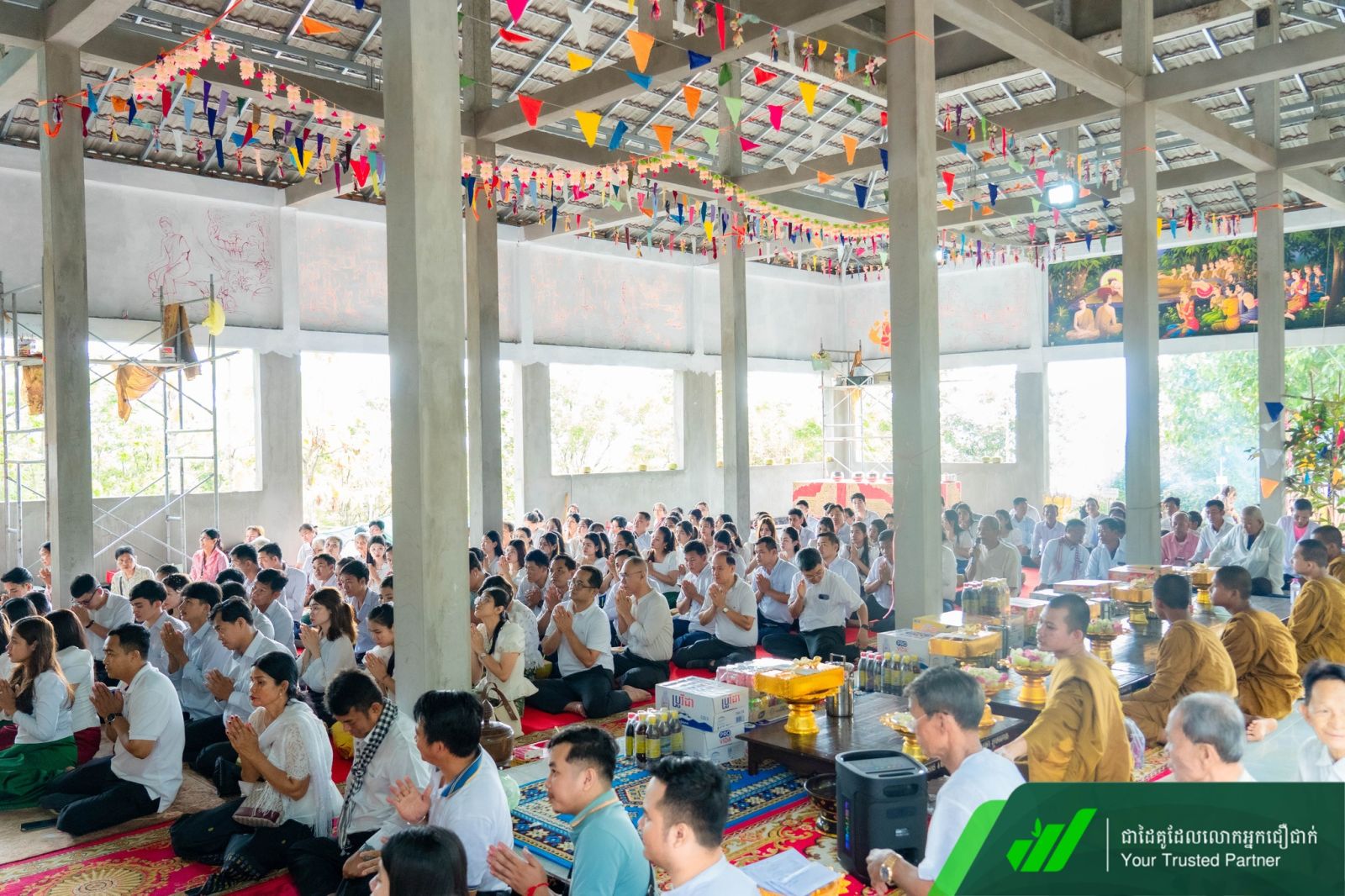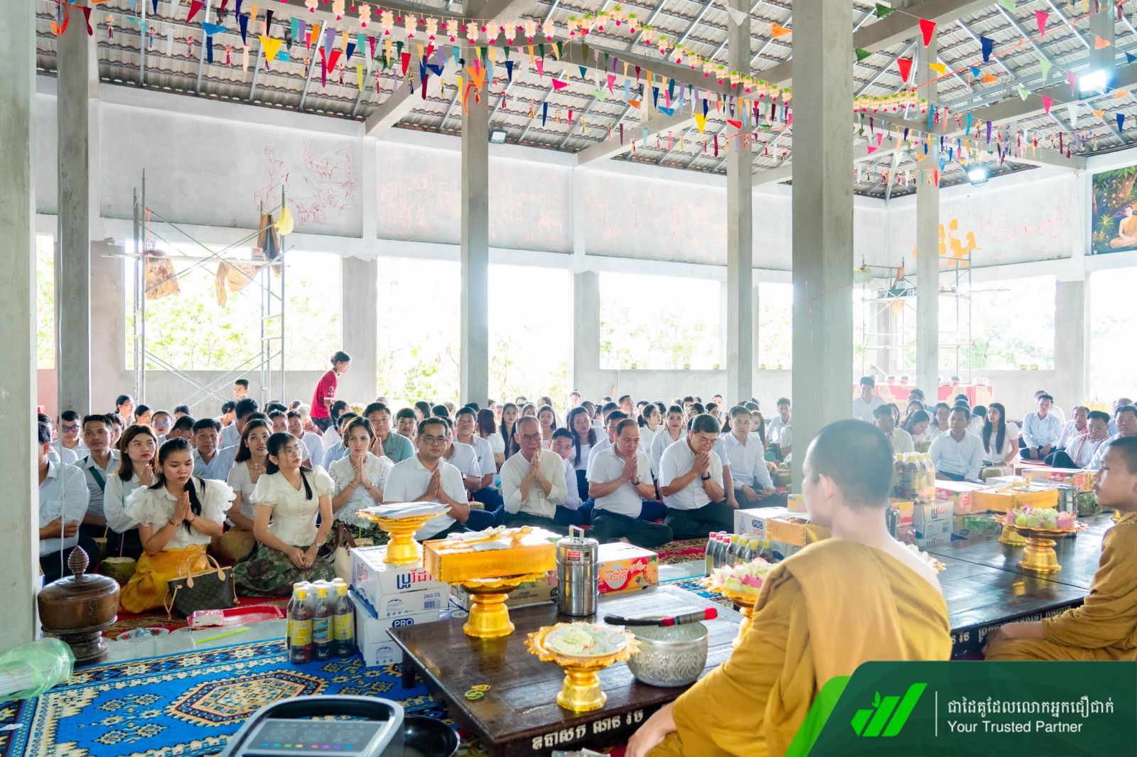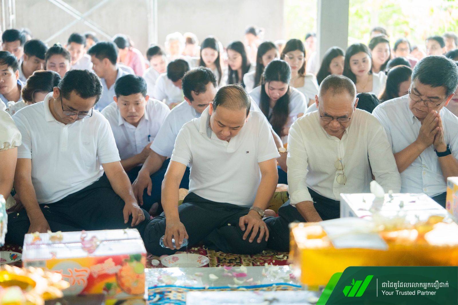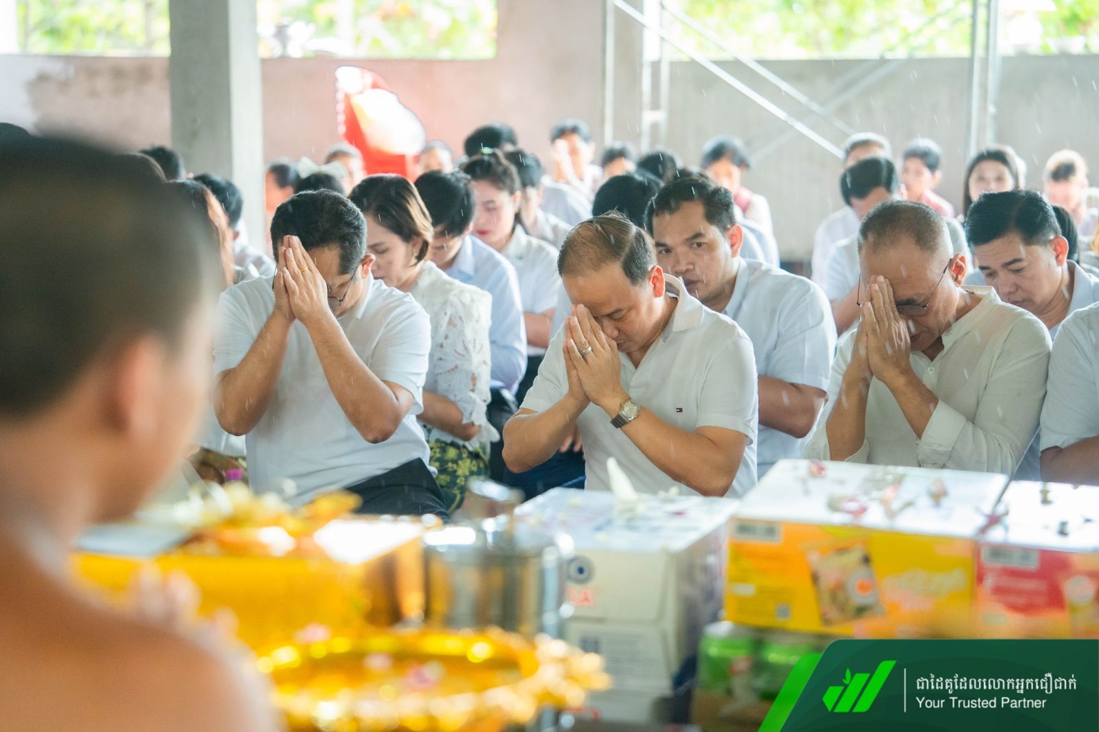 នៅក្នុងពិធីបុណ្យនោះ ថ្នាក់ដឹកនាំ និងបុគ្គលិកទាំងអស់ រួមទាំង លោកតាអាចារ្យ យាយជី តាជី បានធ្វើបទនមស្សការសមាទានសីល និងវេរភត្តាហារព្រមទាំងទេយ្យទាន និងប្រគេនបច្ច័យដល់ព្រះសង្ឃ បង្សុកូលដើម្បីឧទ្ទិសកុសលដល់វិញ្ញាណក្ខន្ធដល់បុព្វការីជន ដែលបានចែកឋានទៅកាន់បរលោក ឲ្យទទួលបានមគ្គផលហើយឲ្យពរដល់កូនចៅជួបតែសេចក្តីសុខ។
