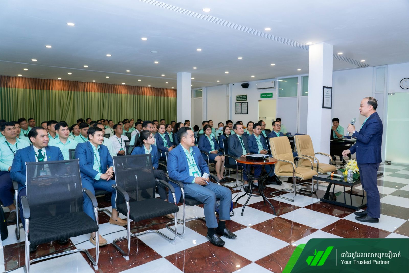 ជាកិច្ចចាប់ផ្តើម លោក អឿន ស៊ីឡែន អគ្គនាយករង បានអញ្ជើញបើកវគ្គជាផ្លូវការដោយផ្តល់ការលើកទឹកចិត្ត និងសារសំខាន់នៃតួនាទីអ្នកគ្រប់គ្រងជួរមុខក្នុងការជំរុញកំណើនរបស់គ្រឹះស្ថាន។ គ្រឹះស្ថានមានកិត្តិយសដែល ឯកឧត្តមបណ្ឌិត សាស្ត្រាចារ្យ ហោ ប៊ុនឡេង បានអញ្ជើញជាវាគ្មិន ដោយចែករំលែកចំណេះដឹង និងបទពិសោធន៍ជាក់ស្តែងដ៏មានតម្លៃលើប្រធានបទនេះ។ ជាកិច្ចបញ្ចប់វគ្គ លោកអគ្គនាយក កែវ សុខា បានផ្តាំផ្ញើដល់អ្នកគ្រប់គ្រងជួរមុខ ត្រូវរក្សាភាពធន់របស់គ្រឹះស្ថាន ពង្រឹងឆន្ទៈ ស្មារតី អភិវឌ្ឍសមត្ថភាព ចំណេះជំនាញទាំងចំណេះដឹង និងចំណេះធ្វើ ព្រមទាំងអនុវត្តយ៉ាងខ្ជាប់ខ្ជួននូវគោលការណ៍ នីតិវិធីរបស់គ្រឹះស្ថាន ដើម្បីធ្វើឲ្យមានសមិទ្ធិផលការងារកាន់តែប្រសើរ និងរីកចម្រើនទៅមុខរួមគ្នា ។