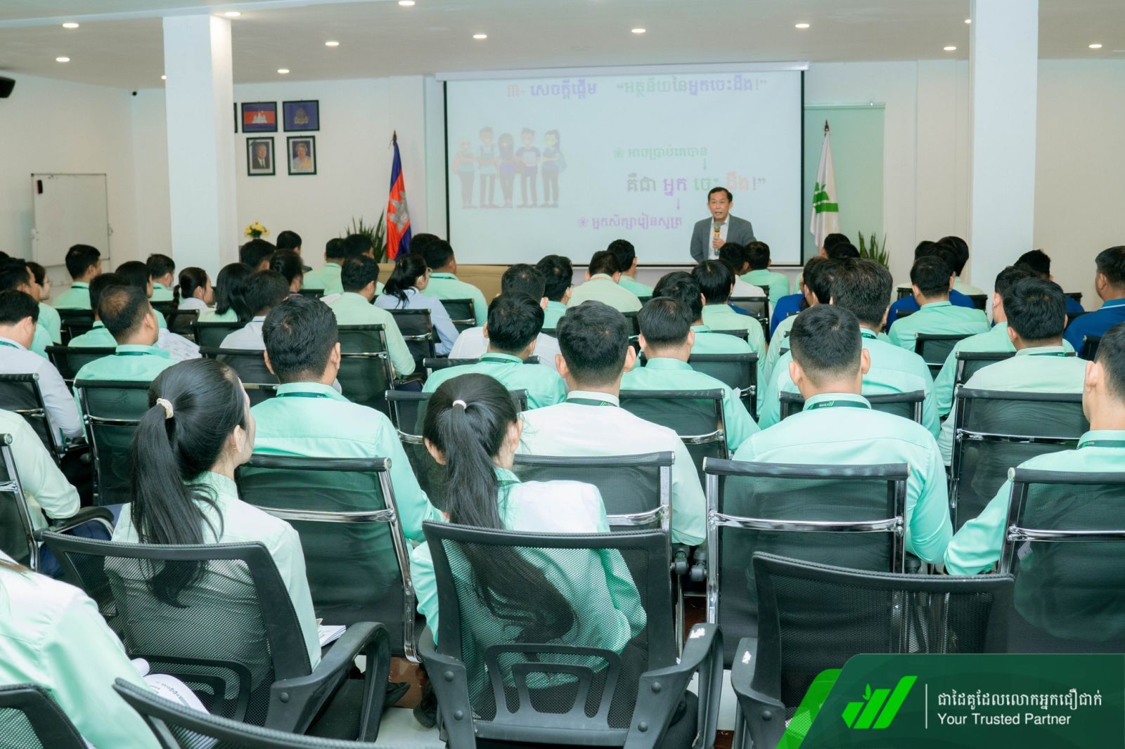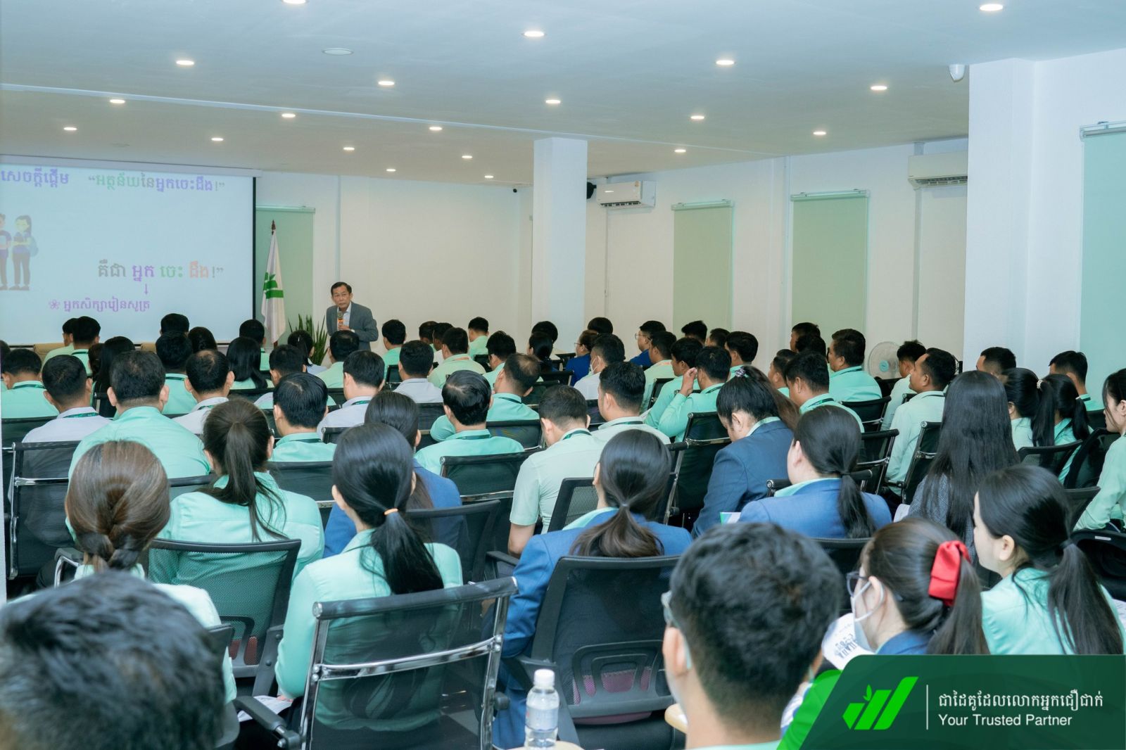 ជាកិច្ចចាប់ផ្តើម លោក អឿន ស៊ីឡែន អគ្គនាយករង បានអញ្ជើញបើកវគ្គជាផ្លូវការដោយផ្តល់ការលើកទឹកចិត្ត និងសារសំខាន់នៃតួនាទីអ្នកគ្រប់គ្រងជួរមុខក្នុងការជំរុញកំណើនរបស់គ្រឹះស្ថាន។ គ្រឹះស្ថានមានកិត្តិយសដែល ឯកឧត្តមបណ្ឌិត សាស្ត្រាចារ្យ ហោ ប៊ុនឡេង បានអញ្ជើញជាវាគ្មិន ដោយចែករំលែកចំណេះដឹង និងបទពិសោធន៍ជាក់ស្តែងដ៏មានតម្លៃលើប្រធានបទនេះ។ ជាកិច្ចបញ្ចប់វគ្គ លោកអគ្គនាយក កែវ សុខា បានផ្តាំផ្ញើដល់អ្នកគ្រប់គ្រងជួរមុខ ត្រូវរក្សាភាពធន់របស់គ្រឹះស្ថាន ពង្រឹងឆន្ទៈ ស្មារតី អភិវឌ្ឍសមត្ថភាព ចំណេះជំនាញទាំងចំណេះដឹង និងចំណេះធ្វើ ព្រមទាំងអនុវត្តយ៉ាងខ្ជាប់ខ្ជួននូវគោលការណ៍ នីតិវិធីរបស់គ្រឹះស្ថាន ដើម្បីធ្វើឲ្យមានសមិទ្ធិផលការងារកាន់តែប្រសើរ និងរីកចម្រើនទៅមុខរួមគ្នា ។
